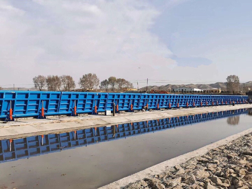 液壓翻板閘門又稱為液壓壩是一種采用液壓系統(tǒng)控制原理和自卸汽車力學(xué)原理,結(jié)合支墩壩水工結(jié)構(gòu)型式的新型活動壩,具備擋水和泄水雙重功能??梢宰詣有购?在出現(xiàn)山洪暴發(fā)等*狀況下能夠及時泄洪,對下游不造成過大沖擊。